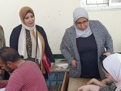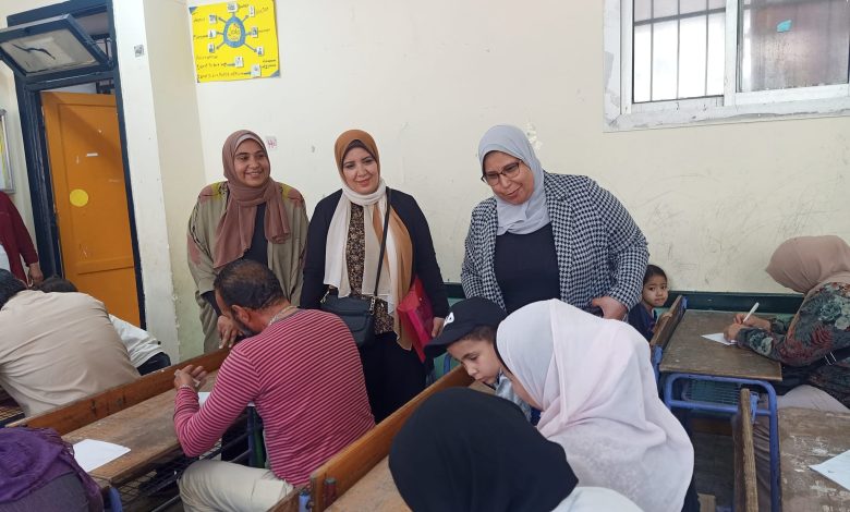 أبو كليلة تتفقد فعاليات إمتحان محو الأمية بمدرسة جعفر بن ابي طالب التجريبية للغات .
