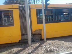 خروج الترام الأصفر عن القضيب يعطل حركة السير بالشاطبي