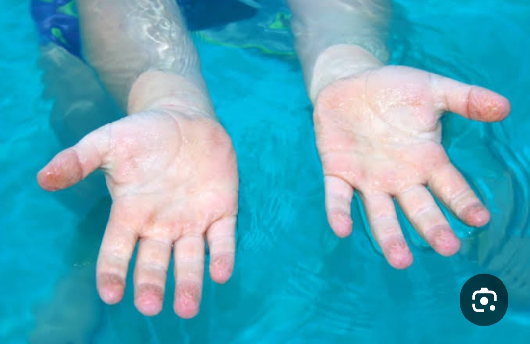 وعندما تنكمش هذه الأوعية، فإنها تسحب معها سطح الجلد، مما يؤدي إلى ظهور التجاعيد المميزة على الأصابع وأصابع القدمين.