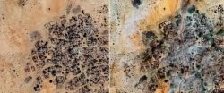 • كانت الصورة متاحة بالفعل على Google Earth، لكن الادعاء حول ما صورته كان غير دقيق. صورة القمر الصناعي، التي تُظهر منطقة في كوميا، السودان، تُصوّر في الواقع ماشية متجمعة حول حفرة سقاية — وليست ضحايا مذبحة.