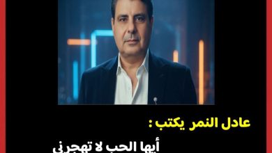توثيق مها السبع عادل النمر يكتب أيها الحب لا تهجرني بقلم : عادل النمر أيها الحب لا تهجرني، لا أخاف…